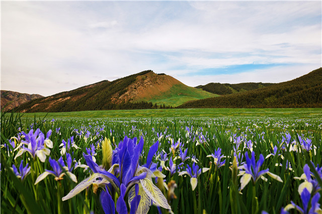 远处,阿尼岗噶尔雪山巍峨耸立,山顶的积雪在阳光的照耀下闪耀着圣洁的光芒;脚下,马兰花大草原一望无际,紫色的马兰花肆意绽放。
