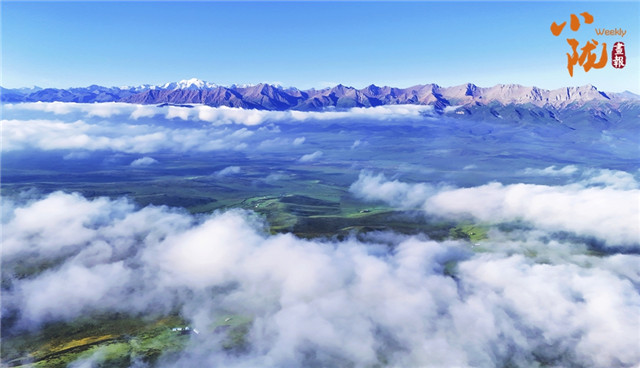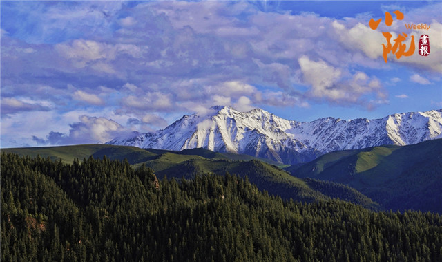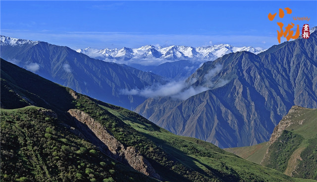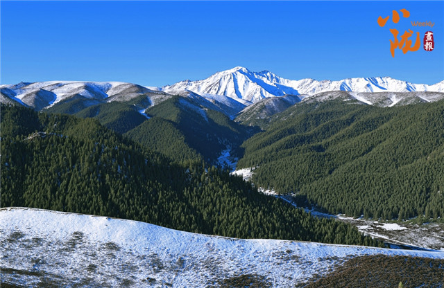 祁连雪峰周围群峰罗列、层峦叠嶂,高低延绵的群山被此起彼伏的林海包围,像一道道五彩的波浪,郁郁葱葱,生机盎然。站在祁连山巅俯瞰,冰川积雪与绿洲农田、森林构成震撼人心的生态画卷。