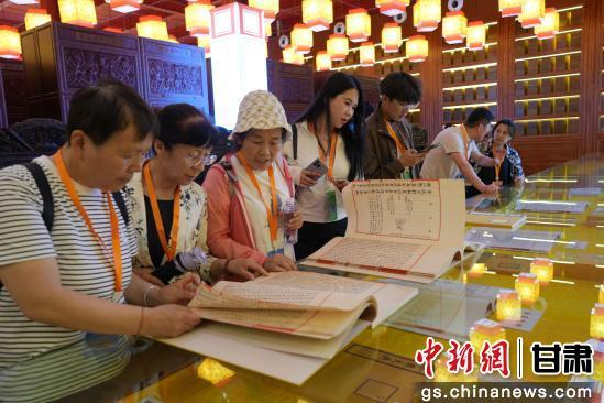 图为宾客参观龙王池四库书院典籍。永登县融媒体中心供图