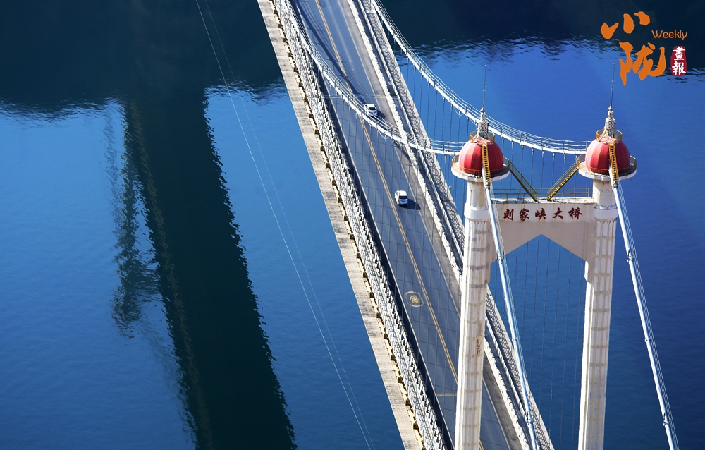 俯瞰刘家峡大桥,震撼不已。只见两座拉着许多铁索高高耸立的桥塔,将500多米长的钢制铁桥拉起,形成单孔大桥。未建桥时,人们需要摆渡或绕行很远的山路才能到对岸,桥将临夏、东乡、永靖、兰州串连起来,天堑变通途,改变了旅客望水兴叹的历史。