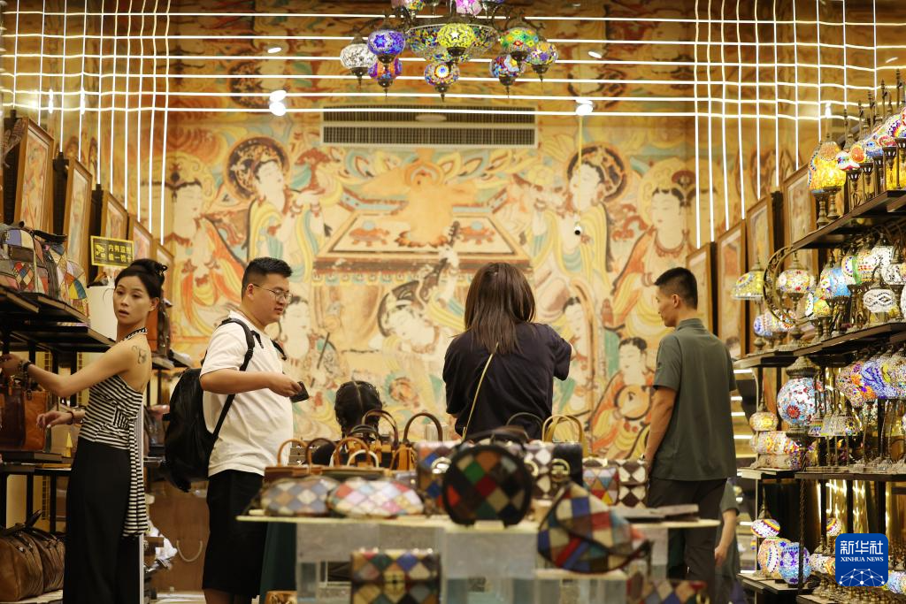 今年以来,甘肃省敦煌市对敦煌夜市等特色街区进行全面提升改造,围绕敦煌深厚的历史文化底蕴,将敦煌壁画、丝路文化等元素巧妙融入其中。不断调整优化消费业态、通过布设文化景观小品、打造沉浸式餐饮体验空间、上线特色文创产品和开展主题演绎互动等为游客带来了多元的体验,让“夜经济”持续升温,不断释放文旅消费潜力。