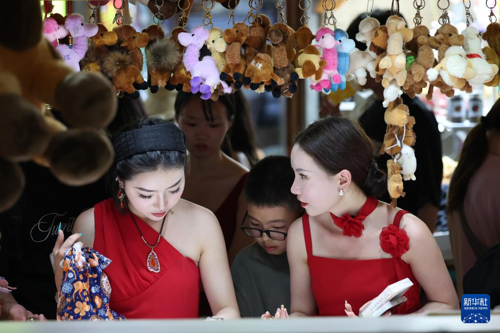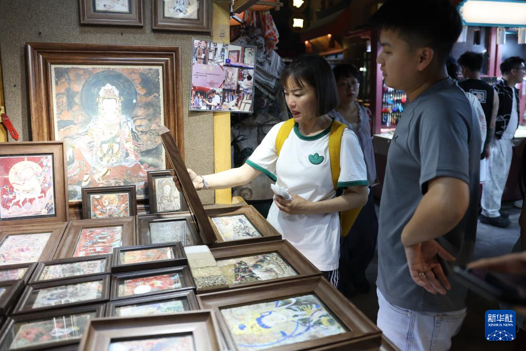 6月26日晚,游客在敦煌夜市选购特色商品。新华社记者 陈斌 摄