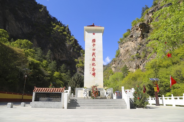 “腊子口战役纪念碑”于1980年8月21日建成。纪念碑宽2.5米,象征着二万五千里长征的漫漫征途,高9.16米,铭记着攻破天险的时间。纪念碑在青山绿水的映衬下,显得格外庄严肃穆。周边是腊子口战役纪念馆,展馆共三层,分四个单元。馆外绿树成荫,馆内陈列着红军途经迭部路线沙盘等,还有众多革命文物及资料图片,在向人们诉说着当年少数民族群众与红军鱼水情深的故事。