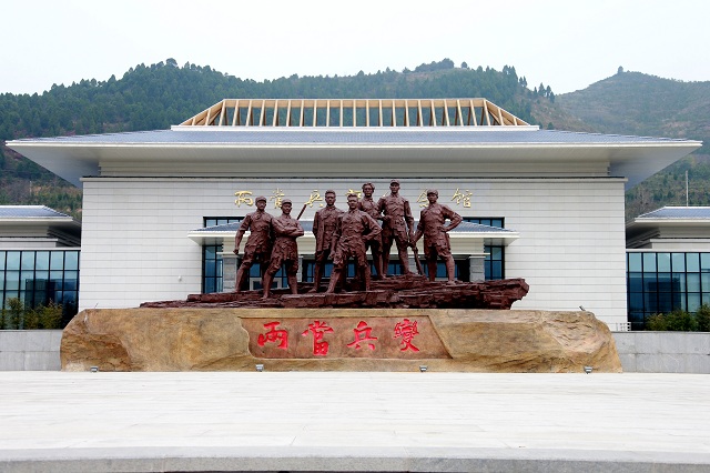 纪念馆坐落于广香东路,它不仅是第四批全国爱国主义教育示范基地、国家AAAA级红色旅游景区,更是一座镌刻着峥嵘岁月的精神丰碑。纪念馆前,一湾澄澈的溪流蜿蜒而过,粼粼波光映照着灰白相间的建筑外墙,更添几分庄严肃穆。岸边垂柳依依,枝条随风轻摆,似在诉说往昔故事;簇簇枫叶与银杏叶点缀其间,每当深秋时节,红与黄交织成绚烂画卷。四周青山如黛,层峦叠嶂,苍翠欲滴的林木将纪念馆温柔环抱。晨雾弥漫时,山峦若隐若现;夕阳西下,余晖洒在屋顶的琉璃瓦上,折射出温暖光芒,与天边晚霞融为一体,勾勒出一幅动静相宜的绝美画面。