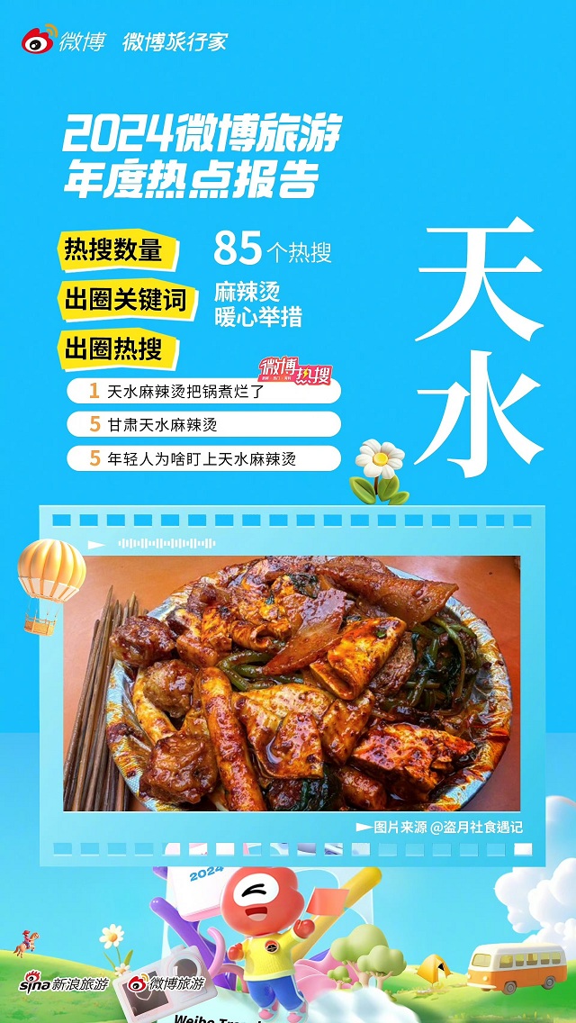 回顾2024年,“天水麻辣烫”在全网出圈,带动全市乃至全省文旅市场高位运行,天水的知名度和影响力实现了质的飞跃。“一碗麻辣烫带火一座城”城市文旅品牌推广案例,获评“长城奖——文旅好品牌”年度省域及城市品牌优秀案例;“始于美食 成于文化——‘天水麻辣烫’聚能增势促融合 谱写文旅高质量发展新篇章”范例,入选中国旅游研究院2024中国旅游创业创新“文化和旅游深度融合发展地方范例”;“天水麻辣烫”入选2024首届中国地标美食产业发展大会《2024地标美食产业化精选案例集》;麦积山大景区入选2024年MBI国家5A级旅游景区影响力100强,位列全国第8名、西北地区第1名……天水麻辣烫、麦积山、伏羲庙等天水“名片”受到人民日报、新华社、中央广播电视总台等主流媒体及其所属新媒体平台的关注报道,“千山万水 就爱天水”文旅品牌更加响亮。