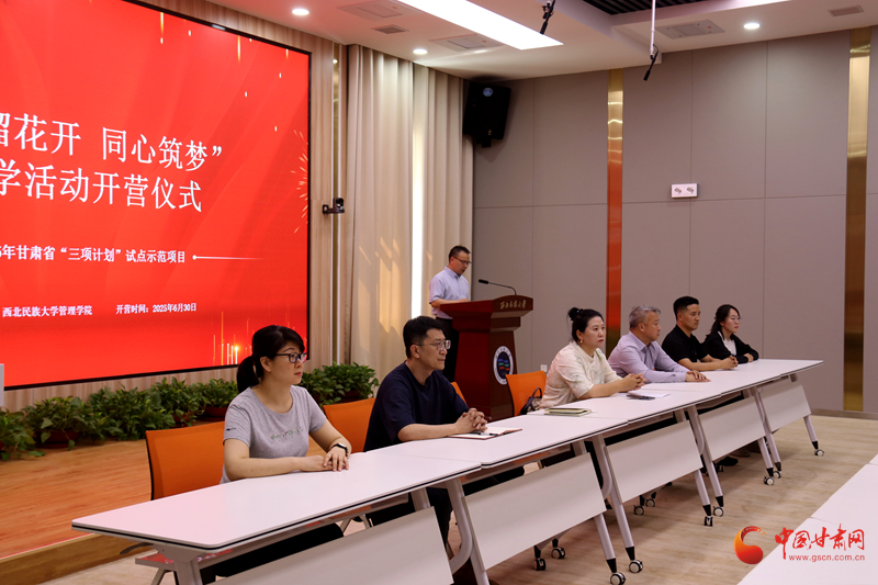 6月30日,作为甘肃省省级“三项计划”试点示范项目,“石榴花开·同心筑梦”研学活动在西北民族大学正式启动。该项目由甘肃省民族事务委员会主办、西北民族大学管理学院承办,来自酒泉市肃北蒙古族自治县等地的各族青少年学子齐聚黄河之滨,开启为期四天的民族团结实践之旅,共同浇灌民族团结进步之花。