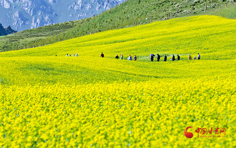 独特的气候,迷人的花香,还有当地特色的小吃,像热乎乎的羊肉垫卷子、青稞面搓鱼子等,吸引了大量的外地游客慕名而来。他们沐浴在这片金色的海洋里,有的骑着骏马在花海旁策马奔腾,感受着风的速度与自由;有的坐在田间的小凳上,品尝着特色小吃,与同行的人谈笑风生;还有的跟着当地的爱舞者挑起欢乐的锅庄,享受夏日傍晚的欢愉。整个景区热闹非凡,充满了欢声笑语,构成了一幅人与自然和谐共处的美好画卷。