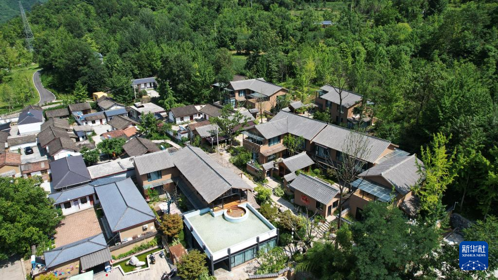 这是7月15日拍摄的田河村“银杏梦谷”民宿(无人机照片)。新华社记者 陈斌 摄