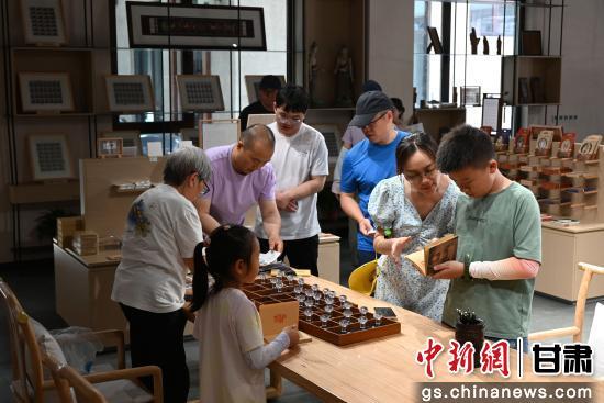 7月19日,在世界文化遗产甘肃敦煌悬泉置遗址景区,游客在悬泉置主题邮局书写明信片和加盖纪念章。张晓亮 摄