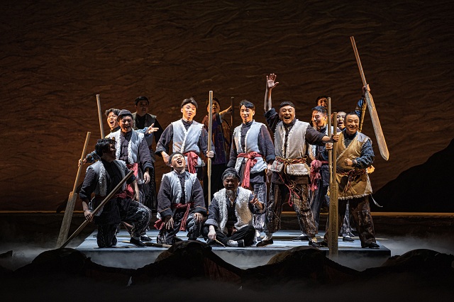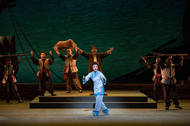 作为国家艺术基金、甘肃省艺术基金2024年度资助项目,《大河东流》以20世纪30年代兰州抗战为背景,聚焦黄河筏客子群体,讲述了刘、王两家两代人从恩怨纠葛到携手运送抗战物资的故事。剧中融入中山铁桥、黄河水车、羊皮筏子等地域符号,以及牛肉面、灰豆子、手抓羊肉等特色饮食文化,通过“一唱众帮”的陇剧“嘛簧”特色唱腔,将“羊皮筏子赛军舰”的故事搬上舞台。该剧自2024年5月首演以来,已在全国各地演出50余场,并于今年6月登陆央视戏曲频道,吸引百万观众线上观看。