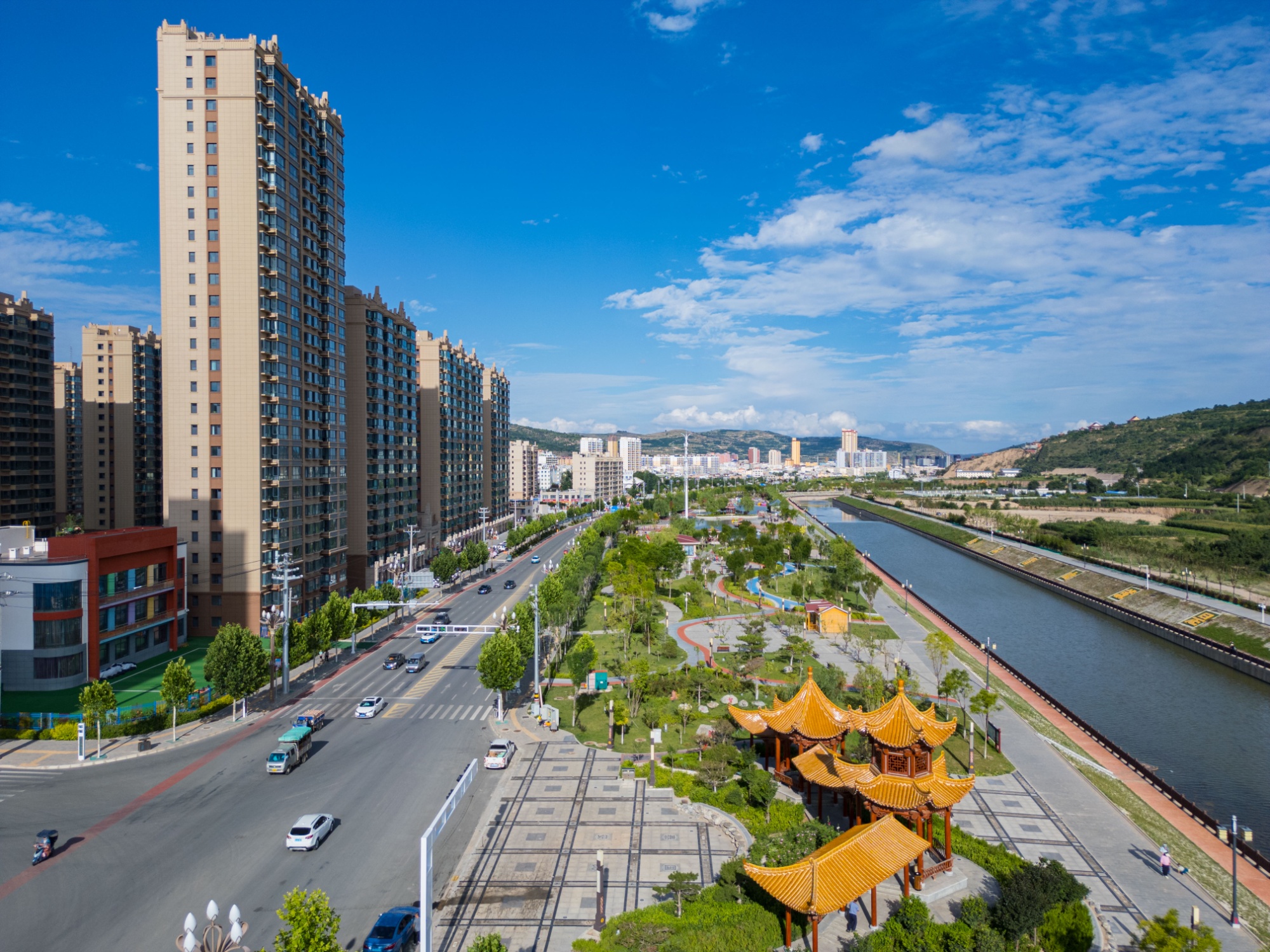 这翻天覆地的变化,源于通渭县对牛谷河实施的系统性综合治理工程。二十里农耕文化水岸风情线,正是这项生态修复与品质提升工程的核心成果。它巧妙地将生态修复、休闲健身、文化展示、儿童游乐等功能融为一体,彻底颠覆了人们对西北旱塬小城的固有印象,成为一张亮丽的城市新名片。