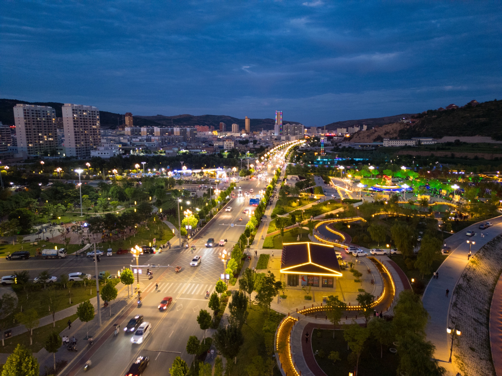 华灯初上,牛谷河水岸风情线迎来了最热闹的时刻。市民们扶老携幼,漫步河畔,享受夏夜的清凉与惬意。市民王如海站在玻璃栈道上,望着脚下灯火璀璨的风情线和远处朦胧的山影,由衷感叹:“谁能想到,咱这黄土旱塬上,真能长出这样一幅‘江南’美景?”