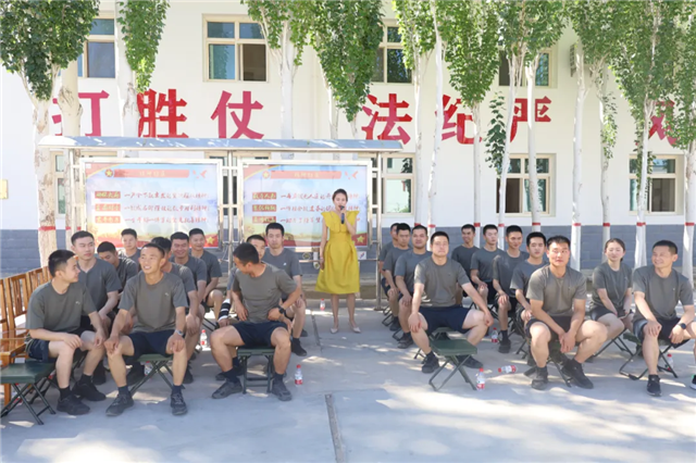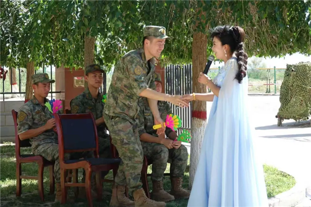 7月25日,酒泉市文化馆联合社区来到辖区部队,通过自编自演的歌舞、器乐演奏、诗朗诵等节目“艺”展风采,并开展了互动游戏。声乐演员与官兵们一同高唱《强军战歌》,把现场氛围推向了高潮。
