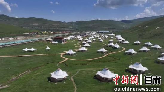 图为抓喜秀龙的草原上,帐篷错落分布。
