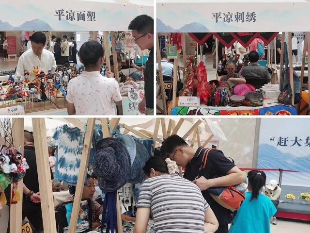 活动中,平凉面塑作品独具风格、品类丰富、造型鲜活、色彩明快,引得现场群众纷纷驻足欣赏、拍照留念,尤其深受孩子们的喜爱。平凉剪纸作品题材广泛,风格在粗犷中透着细腻,让观众真切感受到剪纸艺术的独特魅力。平凉刺绣作品造型夸张、色彩艳丽、品类众多,引得观众纷纷对绣品的细腻针法和精美图案赞不绝口。古法蓝染作品吸引了众多追求自然、环保的消费者,现场展示的蓝染服饰、手帕、挎包等产品,既保留了传统韵味,又融入了现代时尚元素。