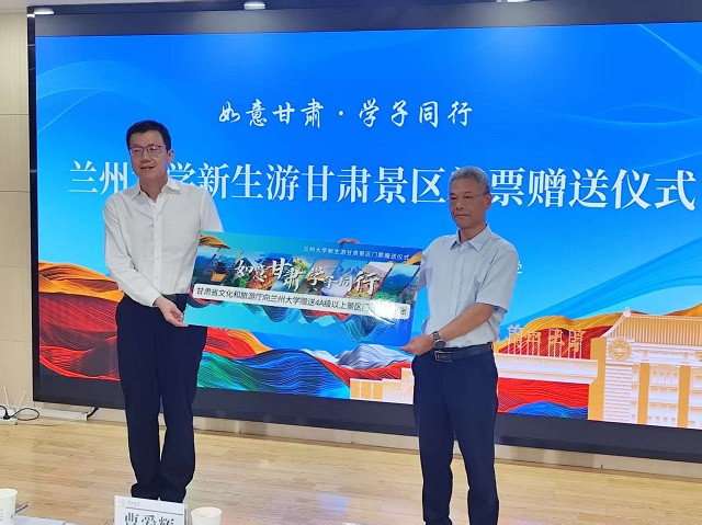 近日,由甘肃省文化和旅游厅和兰州大学联合推出的“如意甘肃·学子同行”兰大新生游甘肃景区门票赠送仪式在兰州大学举办。甘肃省文化和旅游厅向兰州大学2025级全体新生赠送4A级以上景区门票1.2万余张,其中5A级景区门票3346张,涵盖麦积山、崆峒山、张掖丹霞、鸣沙山月牙泉等39家精品景区,门票有效期至2025年12月31日。