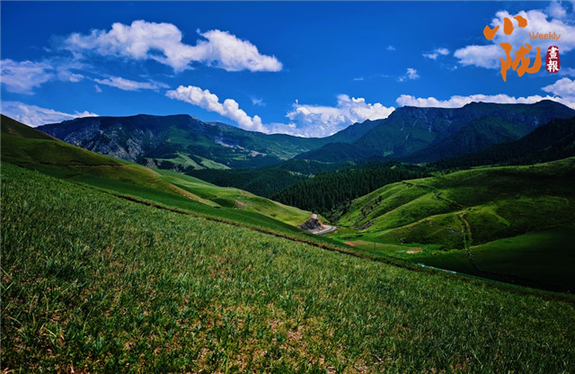 在起伏的丘陵间,草原宛如少女柔美的曲线。站在草原之上,远处是终年不化的雪山,脚下是绵软的草地与盛开的鲜花,蓝天下白云悠悠,微风吹过,浓郁的花香扑鼻而来,让人沉醉其中,舍不得离开。