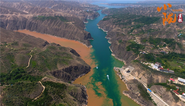 在刘家峡大坝附近,黄河、洮河以“Y”字形在龙汇山前交汇,它们轻盈碰撞,一清一浊、一蓝一黄,形成了“泾渭分明”的界线,这便是著名的“黄洮交汇”奇观。黄河从青藏高原奔流而下,上游地区植被覆盖率高,水土侵蚀相对较弱,在这片水域,黄河平静安宁,色蓝清澈。洮河是黄河水系的重要支流,流经碌曲、临潭、临洮等县,流经黄土高原西缘,河水携带大量泥沙,所以当洮河跟黄河一交汇的时候,就会出现“黄河清,洮河黄”的神奇景象。
