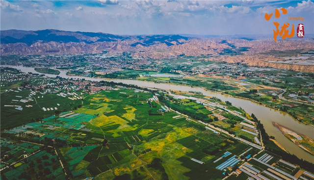 从空中俯瞰,大河气象万千、沃野良田万顷,绿意盎然,山水辉映。在景泰县五佛乡,三面环山,一面临水,黄河在这里拐了好几个弯,每个弯都“弯”出了片片绿地,勤劳的人民群众,利用盐碱地发展现代渔业养殖和林果种植产业,让不毛之地变成了丰饶良田。