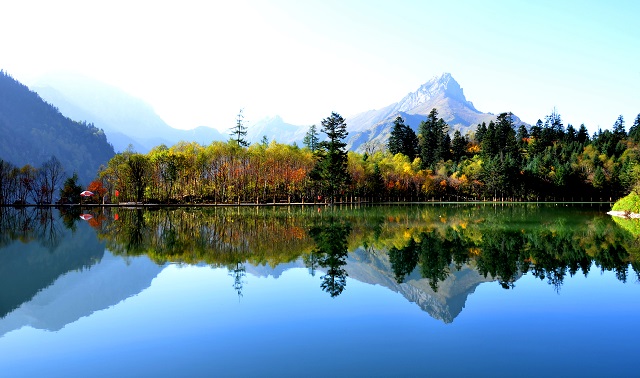 官鹅沟的秋,是一卷浓墨重彩的山水长卷。碧绿的湖水与五彩的林带相映成趣,远处雪山巍峨,近处溪流潺潺。漫步沟内,一步一景,仿佛置身童话世界。这里是徒步者的乐园,更是秋日写生、摄影的绝佳取景地。