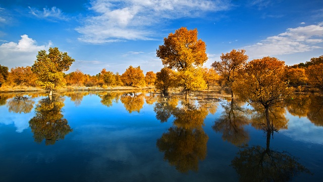 位于酒泉的金塔胡杨林,是秋日最炽热的告白。十月的胡杨,披上一身金黄,倒映在清澈的湖水中,仿佛沙漠中绽放的火焰。漫步林间,脚下落叶沙沙作响,远处驼铃悠扬,仿佛穿越千年,回到丝路商队往来的繁华年代。这里不仅是自然的馈赠,更是生命的礼赞。