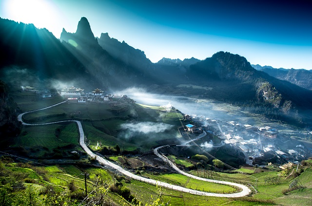 秋日的扎尕那,是一座隐匿于雪山下的世外桃源。群山环抱中,藏寨炊烟袅袅,青稞田泛起金黄,牦牛漫步在草甸上,一切都静谧如画。晨起时,薄雾缭绕山间,阳光缓缓洒向村落,仿佛仙境般朦胧而神圣。这里是避世静心的绝佳之地,更是体验藏族文化与自然融合的窗口。