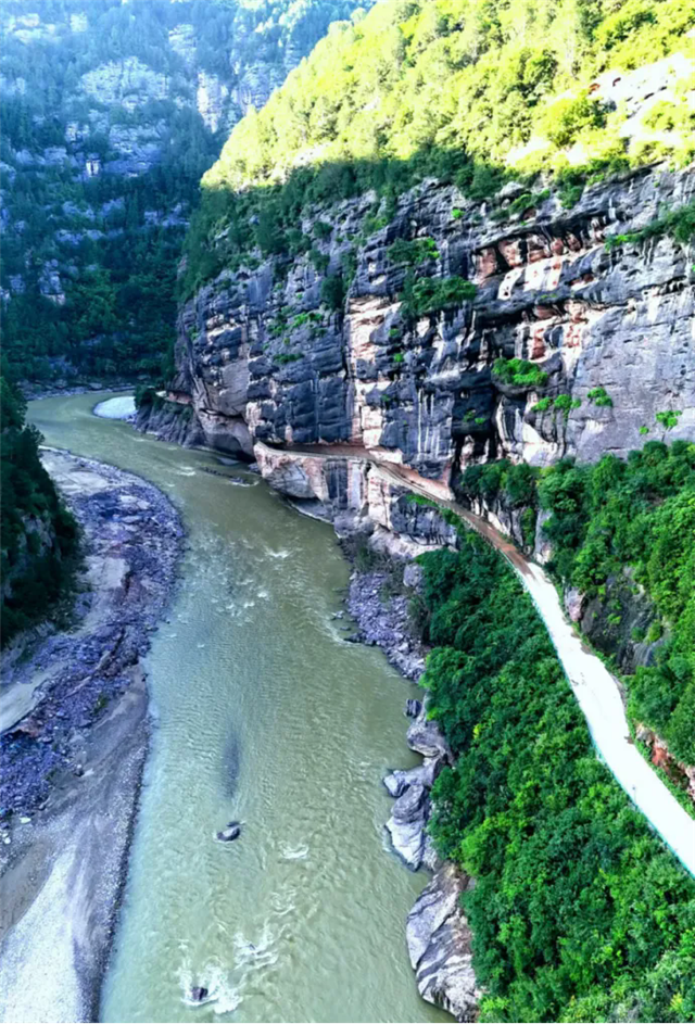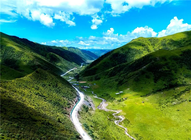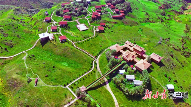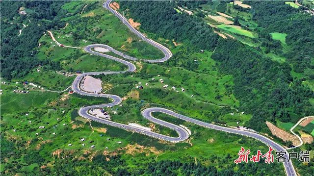山梁上白色栈道蜿蜒,线条婀娜灵动
