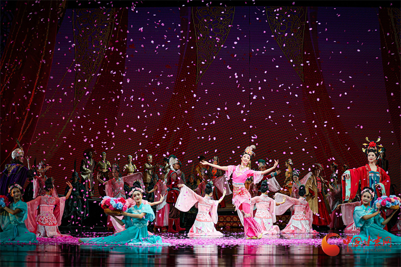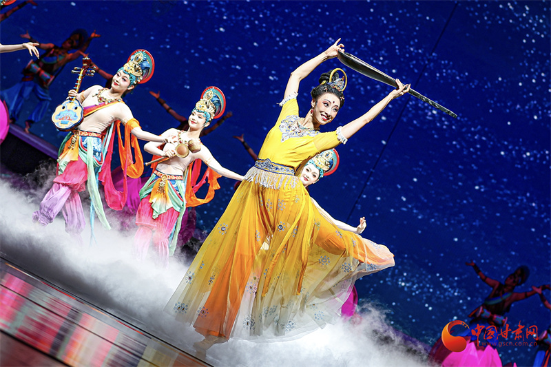 丝路长风奏和合乐章,花雨缤纷迎四海宾朋。9月20日晚,在第八届丝绸之路(敦煌)国际文化博览会即将启幕之际,敦煌大剧院内华灯初上、舞韵生辉、乐声流淌,舞剧《丝路花雨》新版作为文博会迎宾演出震撼上演。这部承载着46年艺术积淀的中国舞剧经典,以“守敦煌舞韵之根,创时代表达之新”的艺术实践,为与会全球嘉宾带来了一场穿越千年的文化艺术盛宴。