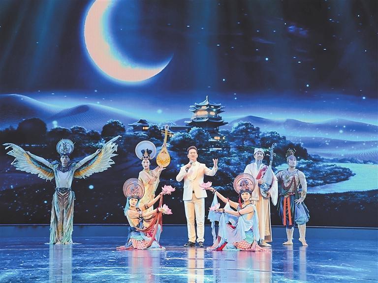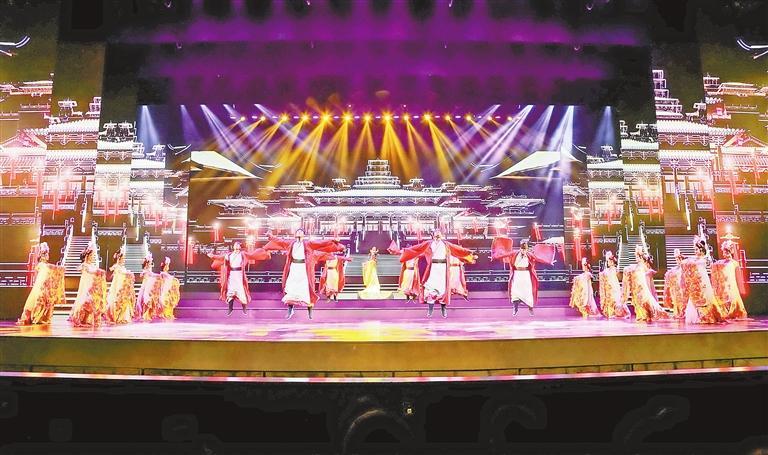 “不同的容颜,相同的目光,都朝着同一个美丽的地方……”演出最后,所有演员一起登上舞台载歌载舞、共同欢唱,同台演出歌舞《相约丝路·相约敦煌》。(新甘肃·甘肃日报记者 吴涵)