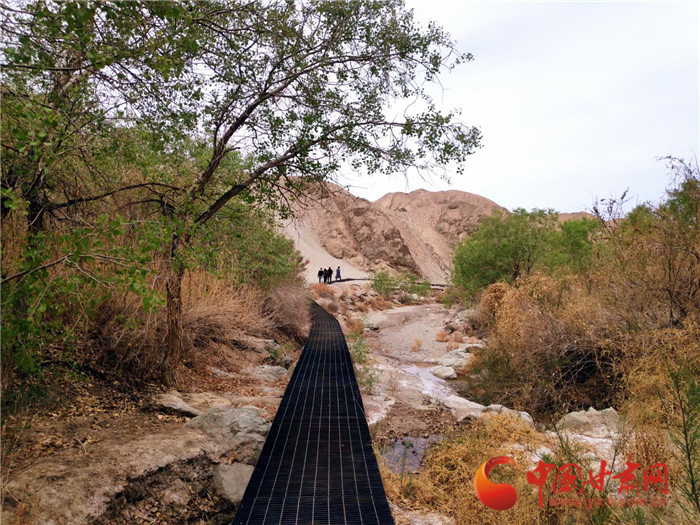 顺着悬泉置遗址向峡谷前行,小路的尽头有一片绿洲,芦苇丛生,郁郁葱葱,在芦苇于巨石之间山泉流淌源源不断,由于山泉水从不是从地下渗出,而是从悬空流出,所有才有悬泉之名。也正是悬泉滋养,为四周处于戈壁之中的悬泉置提供了稳定水源,让这里成为丝绸之路上的重要驿置。