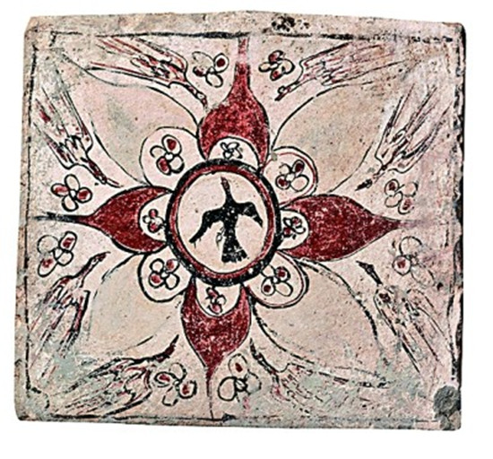 馆藏魏晋时期八鸟朝阳彩绘画像砖。