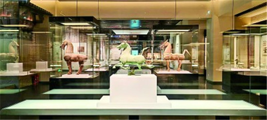 武威市博物馆“河西都会 天马故乡——武威历史文物展”展厅一景。