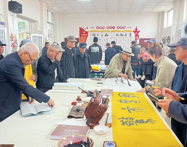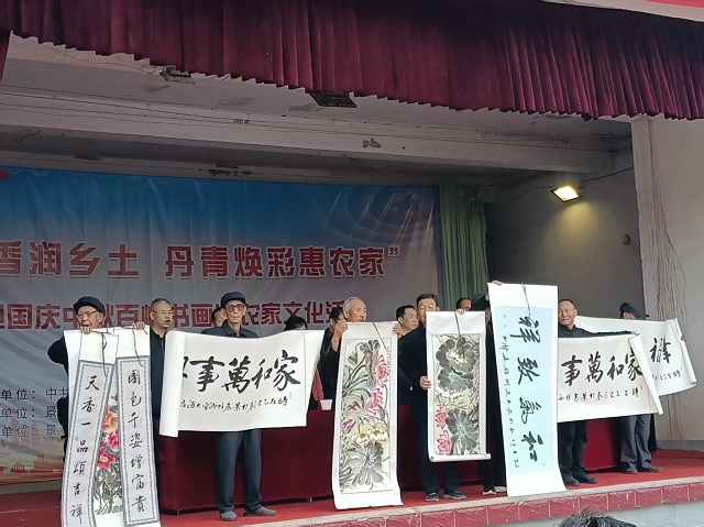 秋韵送爽,翰墨飘香。为丰富群众精神文化生活,弘扬中华优秀传统文化,推动优质文化资源直达基层,9月28日,由白银市委宣传部、市文广旅局联合主办的“翰墨飘香润乡土 丹青焕彩惠农家”白银市庆国庆迎中秋百幅书画进农家文化活动在景泰县喜泉镇兴泉村文化广场正式启动。