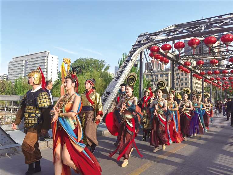其中,10月5日至10月8日,兰州市文化和旅游局将在中山桥举办“穿越千年梦幻金城”历史人物沉浸式演出,活动以敦煌飞天长绸为视觉符号,由彭英甲、张骞、霍去病、玄奘、马可·波罗5位历史人物串联四大历史篇章形成时空闭环,向广大游客市民生动展现丝绸之路文明交融与“一带一路”精神传承。