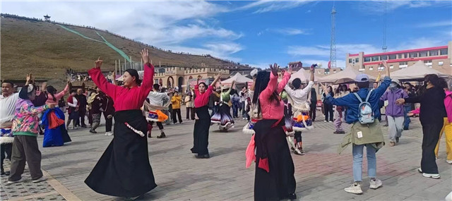 在阿尼嘎卓帐篷城和乌鞘岭,草原的辽阔与非遗的精致交相辉映,非遗的呈现别具一番雄浑与豪迈。传承人们在此放声高歌,高亢悠扬的华锐藏族民歌,仿佛穿透了云霄,与千年岭脉对话。紧随其后的,是华锐藏族锅庄舞,舞者们身着盛装,长袖挥舞,动作刚健有力,步伐沉稳如磐,在高原的猎猎风中,展现出一种与天地共舞的庄严与豪情。游客们驻足聆听,感受着跨越时空的文化震撼,体会着与山河共舞的激情。
