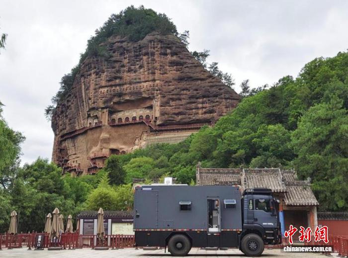 敦煌研究院文物数字化智能移动平台在天水麦积山石窟数字化应用场景。(资料图,敦煌研究院供图)