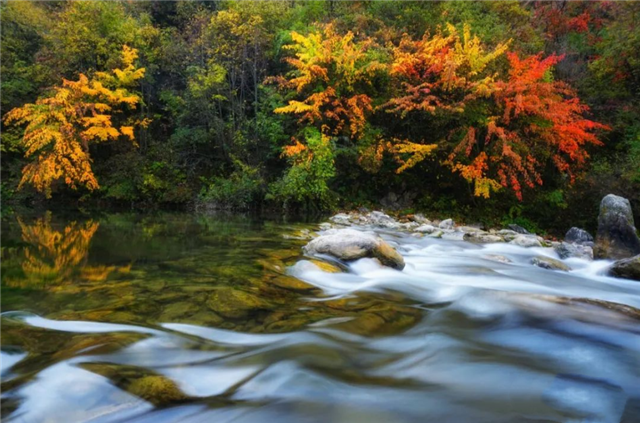 连脚下的溪水都映得斑斓