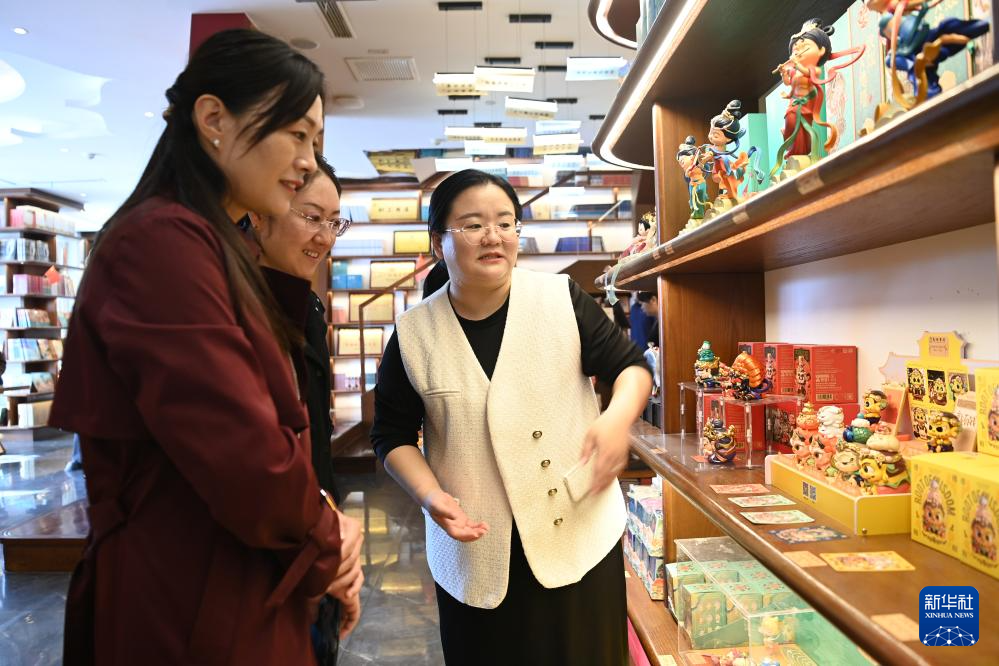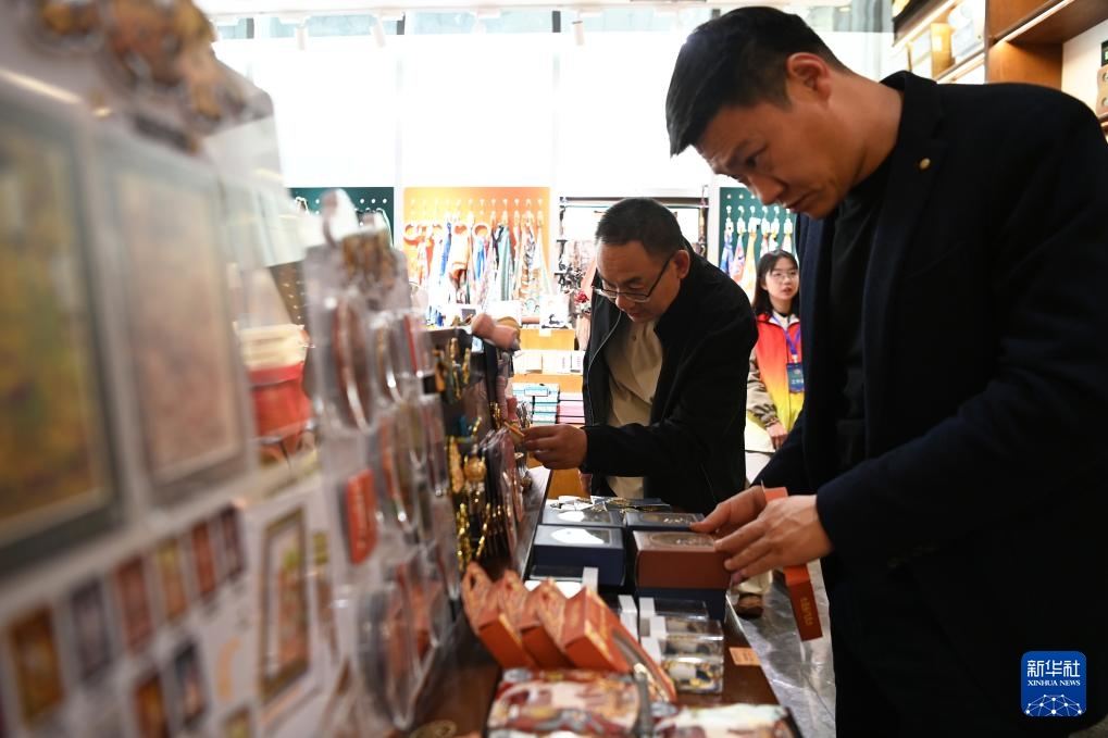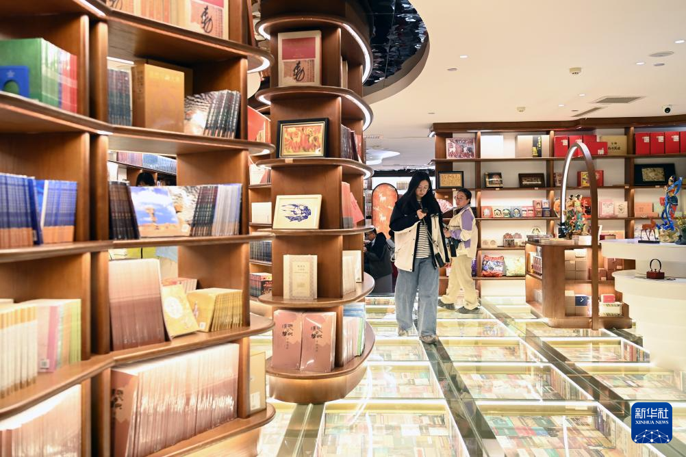 10月11日,游客在敦煌书局选购文创产品。新华社记者 范培珅 摄