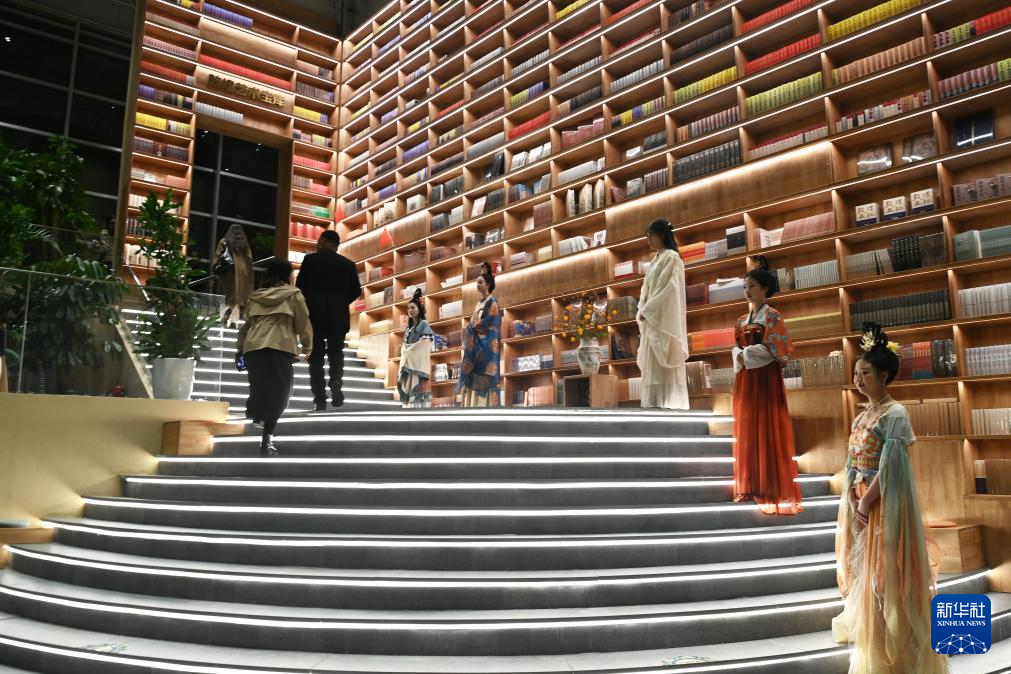 10月11日,游客在敦煌书局参观游览。新华社记者 范培珅 摄