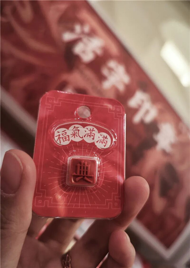 走出夜市,向西南1.5公里的党河河畔,就是敦煌印局。负一层有一面活字印章墙,在一柜20行第六个,记者通过扫码找到了自己的名字,一只包装秀丽的反体字,上面写着“福气满满”。