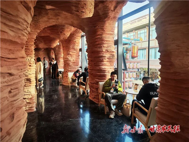 敦煌印局将文创、书咖、研学、印章等现代元素巧妙融入传统建筑之中,2400平方米的空间里,装饰设计等均取材于敦煌壁画。将闲置资源转化为具有鲜明文化特色和高度吸引力的文化空间,既带动了周边地区经济发展,又能通过丰富多彩的文化活动和研学课程,让更多人了解并喜爱敦煌文化。那一刻,我忽然明白:所谓“来敦煌”,不是匆匆照面,而是让千年光阴替你把一次心跳拓印成册,随身携带。