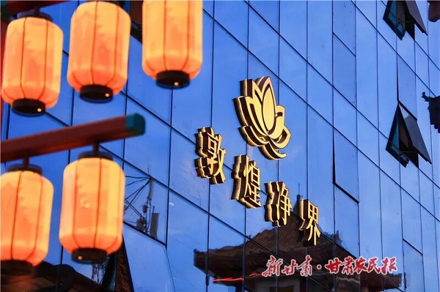 同样在敦煌夜市中段,近日火了一处特别的打卡点——敦煌净界。蓝色豪华大气的门头,两层玻璃幕墙,进门就仿佛来到了一个神秘的石窟,不禁让人怀疑它真的只是一个卫生间?