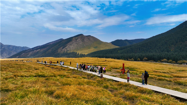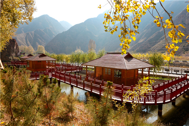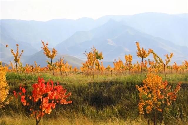 离开乌鞘岭,向武威城区方向奔驰,便会遇见秋天在武威城南的山麓中舒展开来。被打翻了金黄色的调色盘,金黄的牧草与灌木交织,明亮而热烈,深深浅浅,正是古人笔下的“最是橙黄橘绿时”。