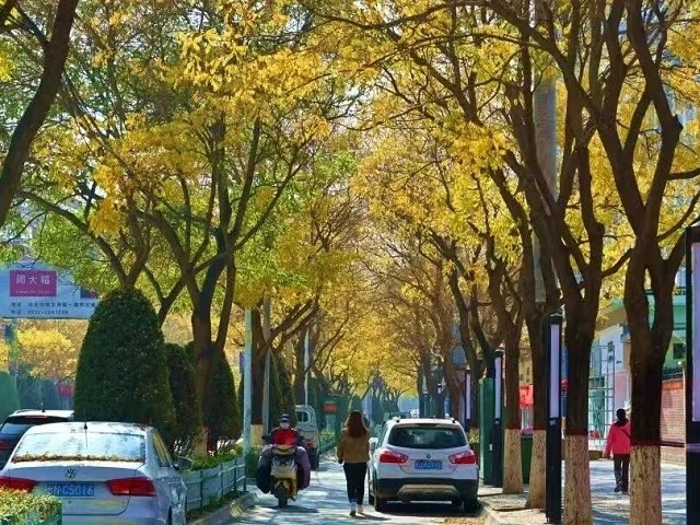 眼下的临洮,“黄金大道”正迎来一年中最美的观赏期。街道两侧的树木褪去绿意,满枝满桠都染上了明亮的金黄,阳光透过叶片洒下,连空气里都浸着暖融融的秋意。漫步其间,整条街道仿佛被大自然打翻了调色盘,只以纯粹的金黄铺展开来,原本匆匆的步伐也不自觉慢了下来,满是惬意。