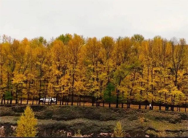 若是恰逢一场早来的秋雪,景致更添几分惊喜:细碎的霜雪轻轻落在金黄的叶片上,白的洁净与黄的明艳相映,冷与暖的碰撞间,勾勒出一幅灵动又静谧的画面,美得让人惊叹不已。