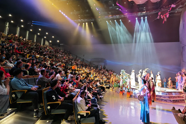自2023年6月首演以来,截至目前,《乐动敦煌》已累计演出2500余场,接待观众超89万人次。乐动敦煌以“乐舞”为桥,让敦煌文化焕发新“声”,通过文旅融合的创新发展模式,构建起“剧、艺、食、趣、学”五大业态体系,实现多产业协调发展。