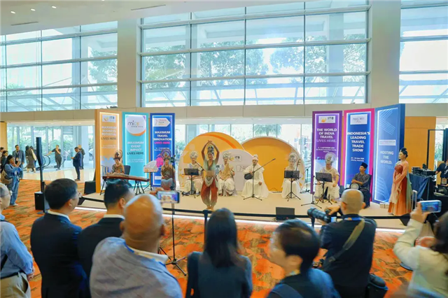 作为亚太地区最具规模与影响力的旅游行业盛会,ITB Asia汇聚了来自世界各地的旅游企业与专业人士。在这一国际平台上,《乐动敦煌·盛世妙音》的演出吸引了广泛关注,让全球旅游业界领略到敦煌乐舞的深厚底蕴。三十分钟的精彩演绎中,《千年莫高·乐动敦煌》《水鼓子》《急胡相问》《心事子》《长沙女引》依次上演,生动再现了莫高窟壁画中的乐舞神韵,以音舞交融的方式,向世界讲述敦煌千年的文化故事。现场反响热烈,掌声不断。
