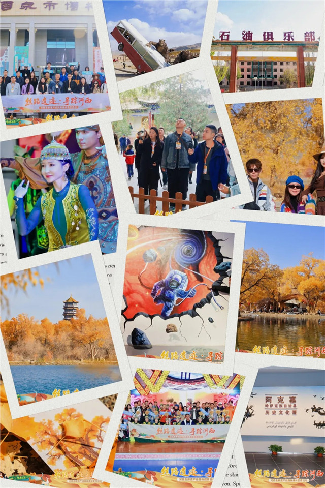 在金塔沙漠胡杨林,顽强的胡杨在秋日绽放出最绚烂的金黄,构成一幅辉煌而凝重的生态画卷。酒泉1969文化创意园,旧厂房焕发新生,工业遗存与航天科技、文创艺术结合,成为备受青睐的城市新地标。藏于峡谷的多坝沟胡杨峡,胡杨、清溪、沙山构成流动画卷,影视剧的取景更为其增添故事感。阿克塞县民族风情园则系统展示了哈萨克族的历史文化与民俗风情,成为了解民族文化的生动窗口。此次活动不仅是一次地理坐标的解锁,更是一场跨越千年的文化共振。通过新媒体镜头,将河西走廊的厚重历史、壮丽山河、民族风情与时代创新生动地呈现在公众面前,以更具互动性和感染力的方式,唤醒了深植于血脉的丝路记忆,助力“河西走廊文旅IP”的现代传播与价值提升。随着本次宣传活动的成功收官,河西走廊的故事再次通过屏幕传遍四方,这条千年的廊道,正以其愈发鲜活的脉搏,邀请着更多人前来聆听、参与并续写它的崭新篇章。