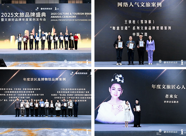 10月24日,2025文旅品牌盛典暨文旅好品牌年度案例发布会在北京举行。由甘肃省文化和旅游厅报送的“如意甘肃”系列文旅品牌营销入选年度网络人气文旅案例,“陇原大地吼秦腔”西北戏曲荟萃展演品牌入选年度非遗品牌案例,甘肃省博物馆文创推广入选年度景区及博物馆品牌案例。由兰州文旅集团报送的兰州水墨丹霞旅游景区品牌入选年度景区及博物馆品牌案例,并现场进行案例分享。来自金昌的青年歌手者来女获评年度文旅匠心人物,现场压轴演唱歌曲《三界四洲》。