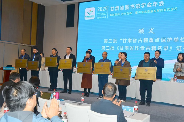 开幕式上还举行了“首届黄河流域图书馆职业技能竞赛(甘肃赛区)”“‘阅·见西部’第二季——一城山水一城韵全民阅读推广活动(甘肃赛区)”颁奖仪式,并为第三批甘肃省古籍重点保护单位和《甘肃省珍贵古籍名录》入选单位授牌,集中展示了甘肃省在专业人才培养、全民阅读推广和古籍保护方面的成果。
